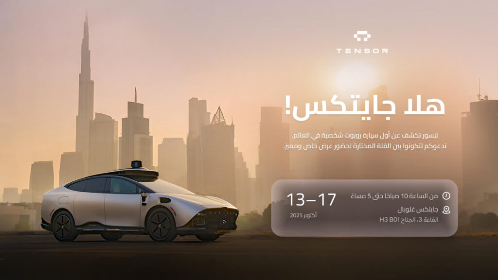 القاعة 3، على الجناح رقم -BO1- أول سيارة ذاتية القيادة من المستوى الرابع للملكية الشخصية في العالم، سيارة تينسور روبوكار، ستعرض في معرض جيتكس العالمي 2025