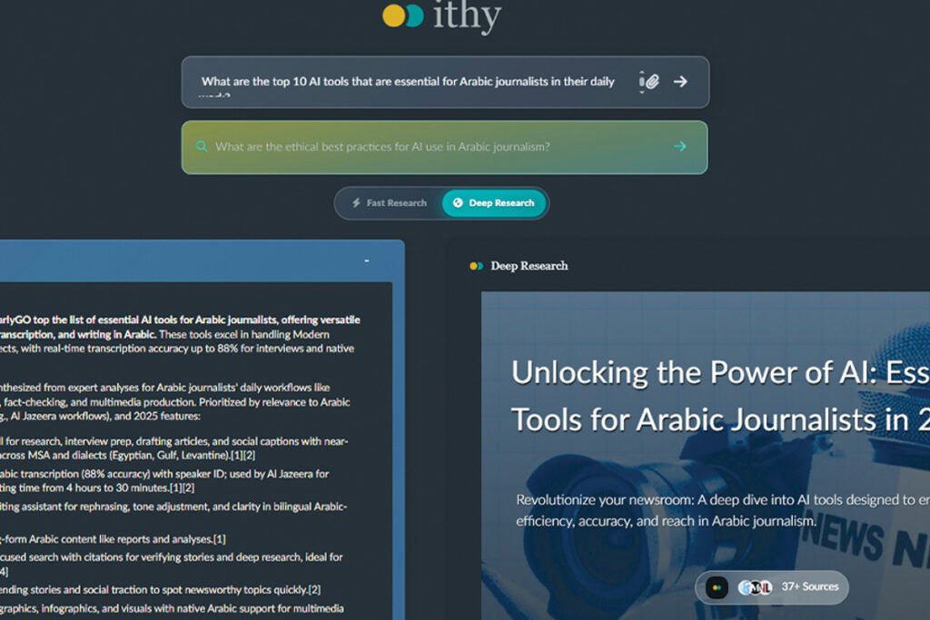 جرب أكبر عدد ممكن من المنصات في البداية (منصة يابانية https://felo.ai/search) منصة صينية (https://chat.deepseek.com/) أخطبوط الانترنت والذكاء الاصطناعي غوغل (https://gemini.google.com/app) محرك بحث للأخبار وأحدث المواضيع (https://www.perplexity.ai/) وبالطبع هناك أداة تجمع كل هذه ضمن منصة واحدة وهي (https://ithy.com/)