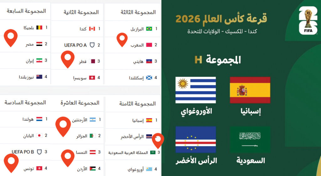 ما هي المجموعات التي أظهرتها القرعة أمس للمنتخبات العربية في كأس العالم لكرة القدم فيفا 2026؟