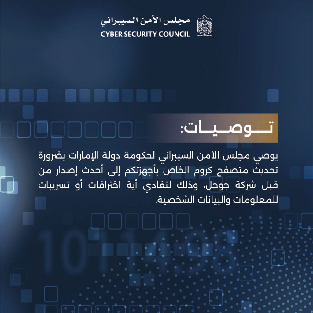 حذّر مجلس الأمن السيبراني لحكومة دولة الإمارات من ثغرات أمنية خطيرة في متصفح “غوغل كروم”.