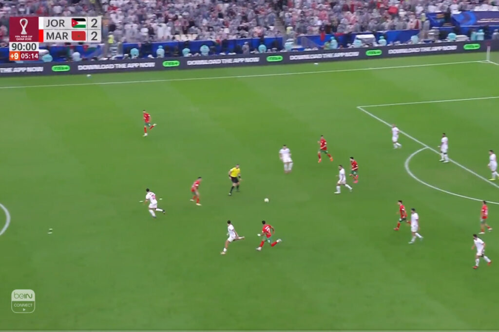 فاز منتخب المغرب بكأس العرب بعد هدف أجرزه عبد الرزاق حمد الله في الشوط الإضافي الأول- هدف للمغرب- -3-2 للمغرب لينتهي الشوط الإضافي الثاني بلا تغيير بنتيجة 3-2 لصالح المغرب.