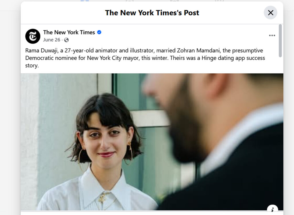 بدأت قصة راما وزهران ممداني عندما التقيا عبر تطبيق المواعدة “هينج” (Hinge). وتطورت العلاقة لتصل إلى مرحلة الخطوبة في دبي، تمت خطوبتهما في دبي في ديسمبر 2024 وتزوجا في أوائل عام 2025 في مدينة نيويورك، في حفل خاص في دبي، ثم في مكتب كاتب المدينة.