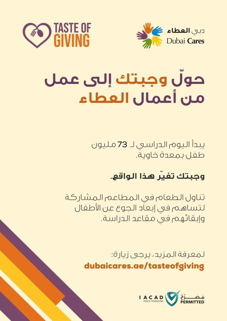 وتختتم دبي العطاء رسالتها بتأكيد: “لم يكن للعطاء هذه النكهة الرائعة من قبل – نكهة تجمع بين الخير، والتعليم، والتغيير الحقيقي”.