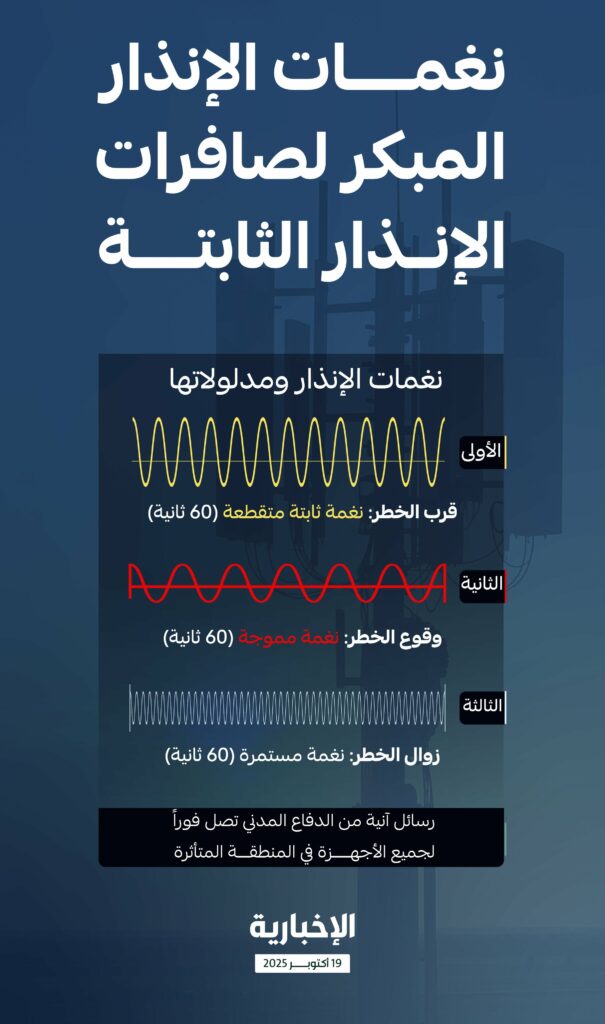 نغمات الإنذار المبكر لصافرات الإنذار الثابتة ودلولاتها